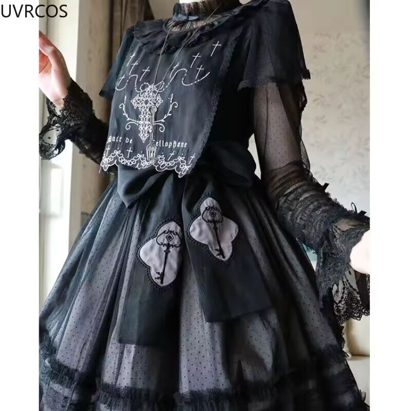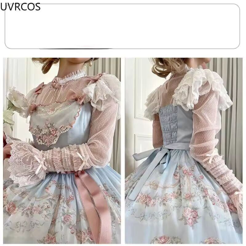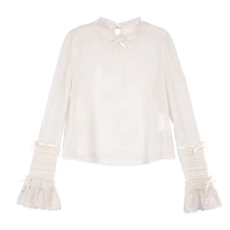 【送料無料◎】 ビクトリア朝のヴィンテージエレガントなブラウス女性甘い弓ロフラレースメッシュ長袖シャツ女の子かわいいルーズ Jsk 内側トップス