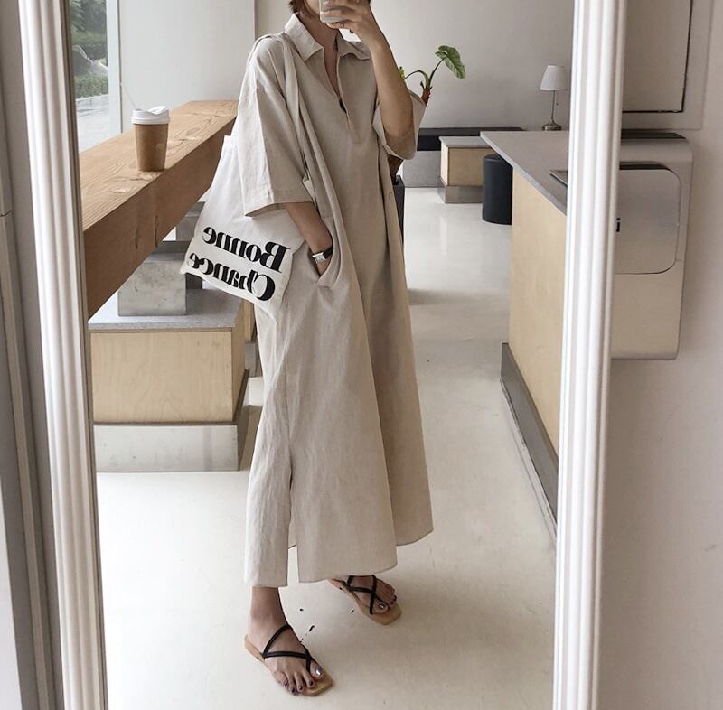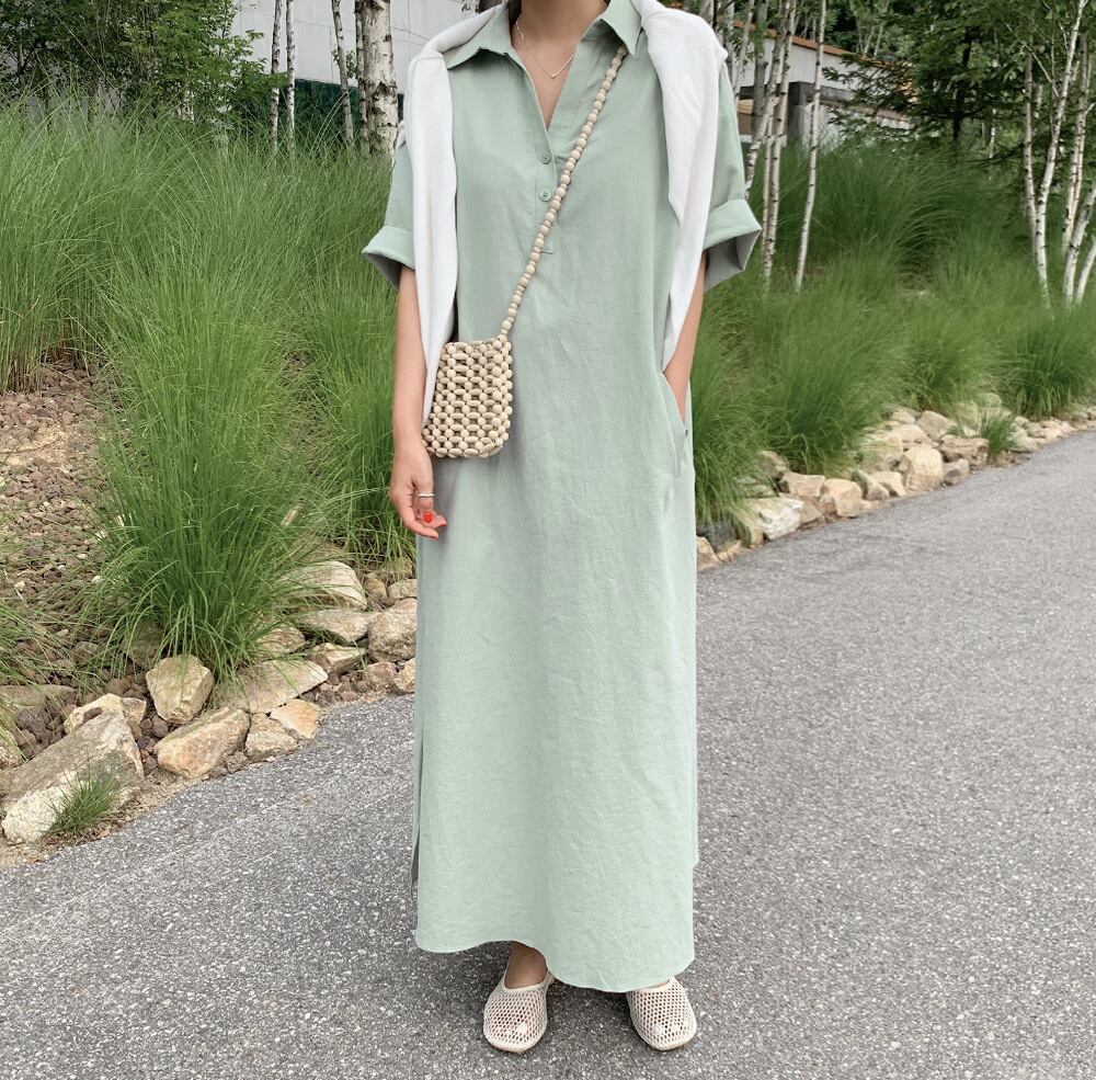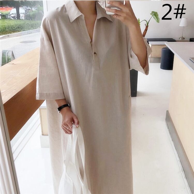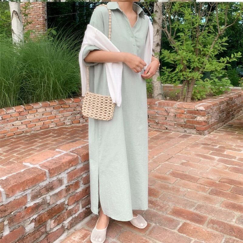 ◎【送料無料】2022春夏新作 シャツワンピース ロングワンピース 半袖 体型カバー レディース カジュアル