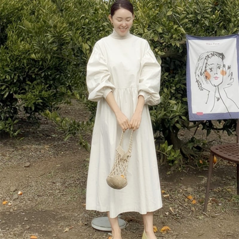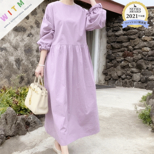 ◎【送料無料】2022春夏新作 パフスリーブ ワンピース ロングワンピース Aライン 体型カバー レディース 韓国風
