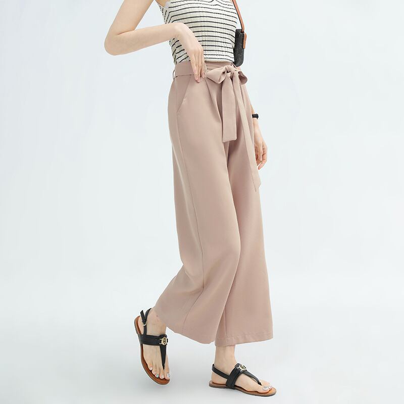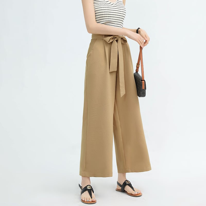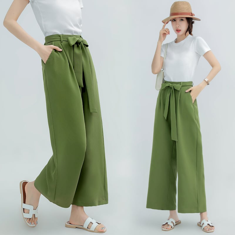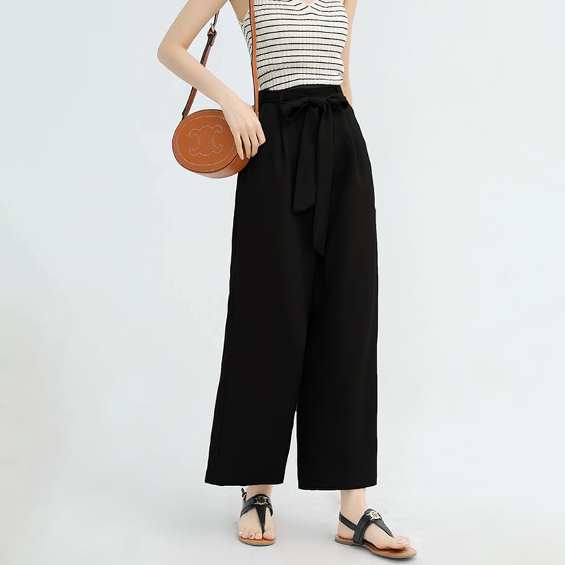 ◎【送料無料】2022春夏新作 ワイドパンツ ロングパンツ ハイウェスト リボン付 レディース ボトムス 美脚 全12色