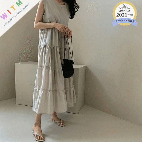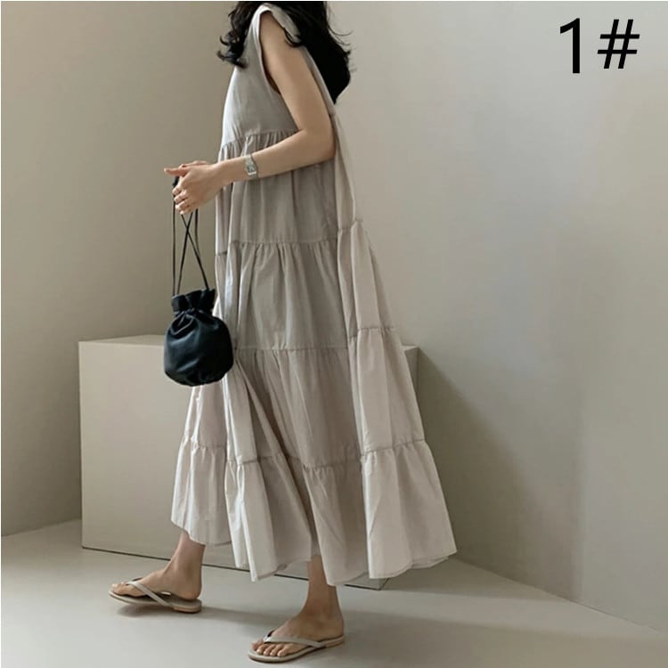 ◎【送料無料】2022春夏新作 ノースリーブ ロング丈ワンピース フレアワンピース 体型カバー レディース 着回し