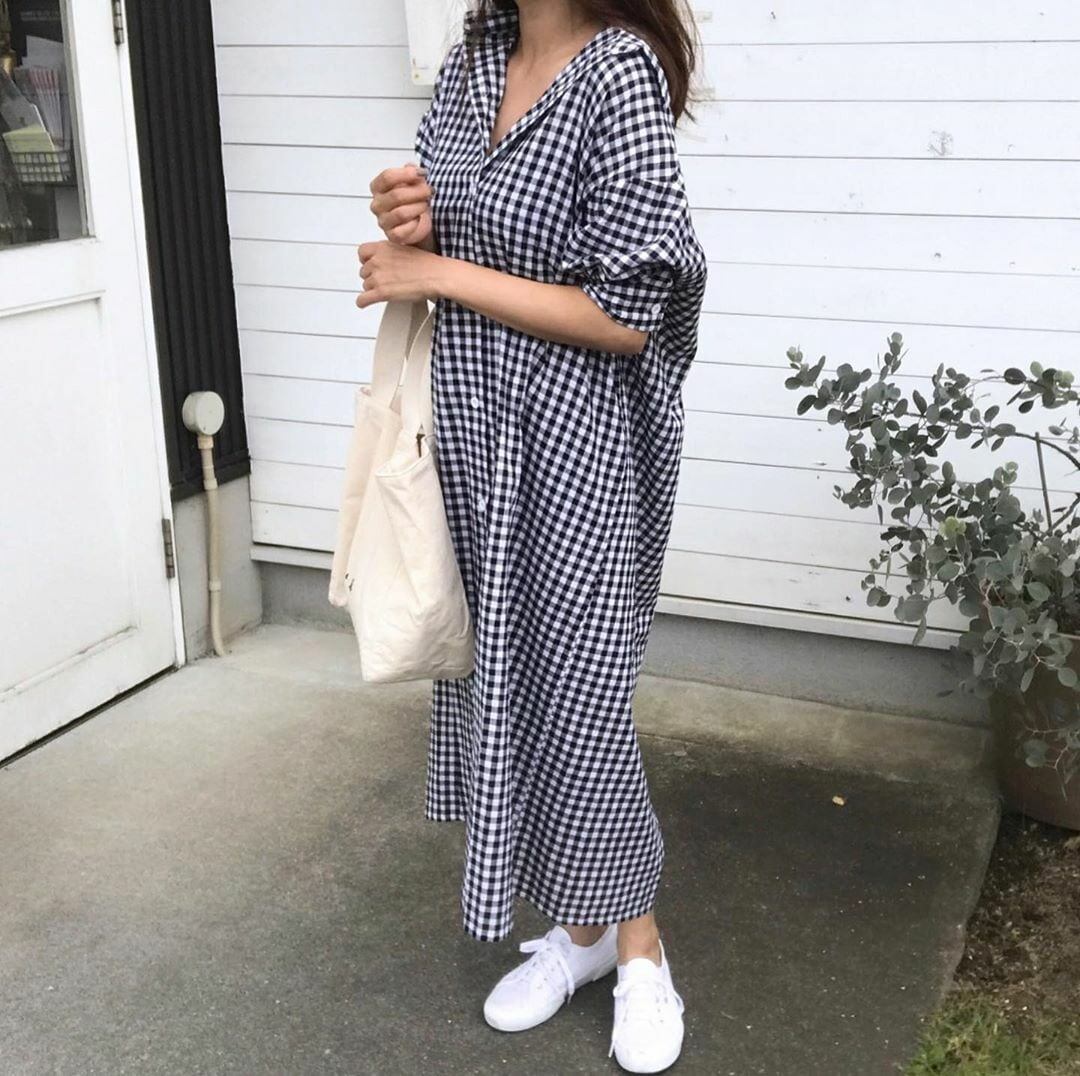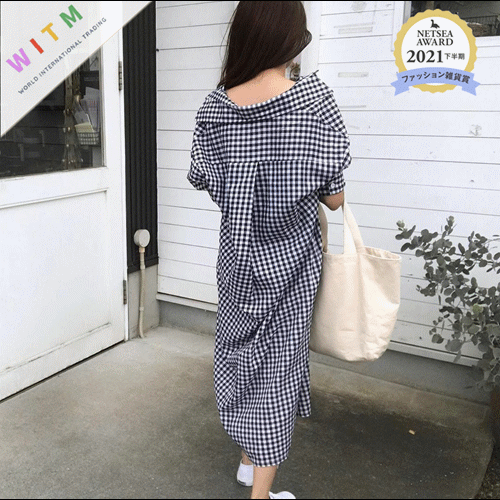 ◎【送料無料】2022春夏新作 チェック柄 シャツワンピース ロングシャツ 1枚で2役 体型カバー レディース カジュアル