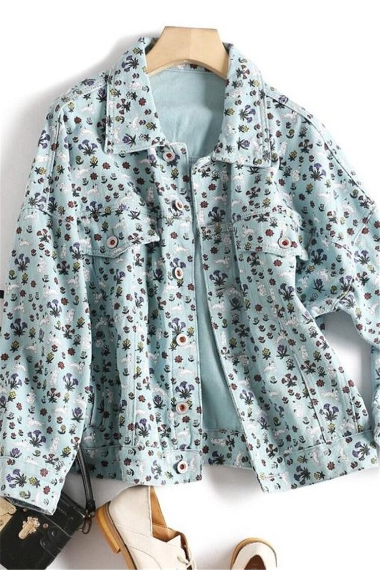 単体ボタンフローラル ショート デニム コート レディース ポロカラー ゆったりする 長袖