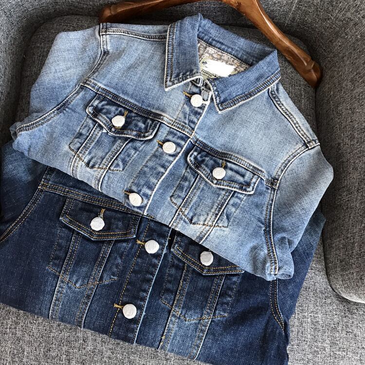 ◎【送料無料】春夏 ウォッシュド オールド 単体ボタン スリム デニム コート レディース