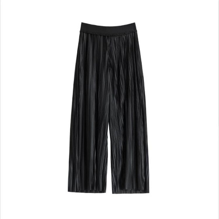 ワイドレッグ 九分丈パンツ 夏 薄い 大きいサイズ カバーする肉 スリム 折り目 ゆったりする