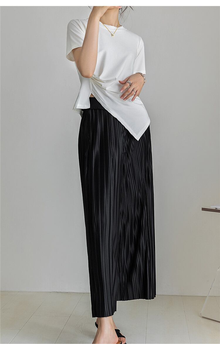 ◎【送料無料】ワイドレッグ 九分丈パンツ 夏 薄い 大きいサイズ カバーする肉 スリム 折り目 ゆったりする