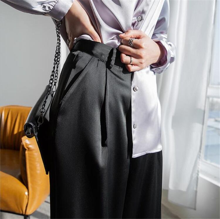 sweet系 モップ ワイドレッグパンツ ドレープ シルキー ハイウエスト ロングパンツ
