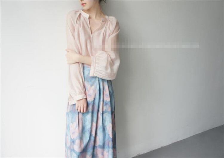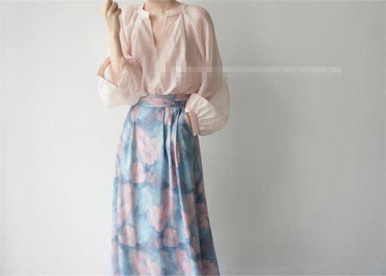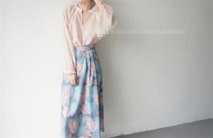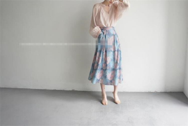 ポケット 膝の上 Aタイプ スカート sweet系 レトロ 油絵スタイル 抽象的な花