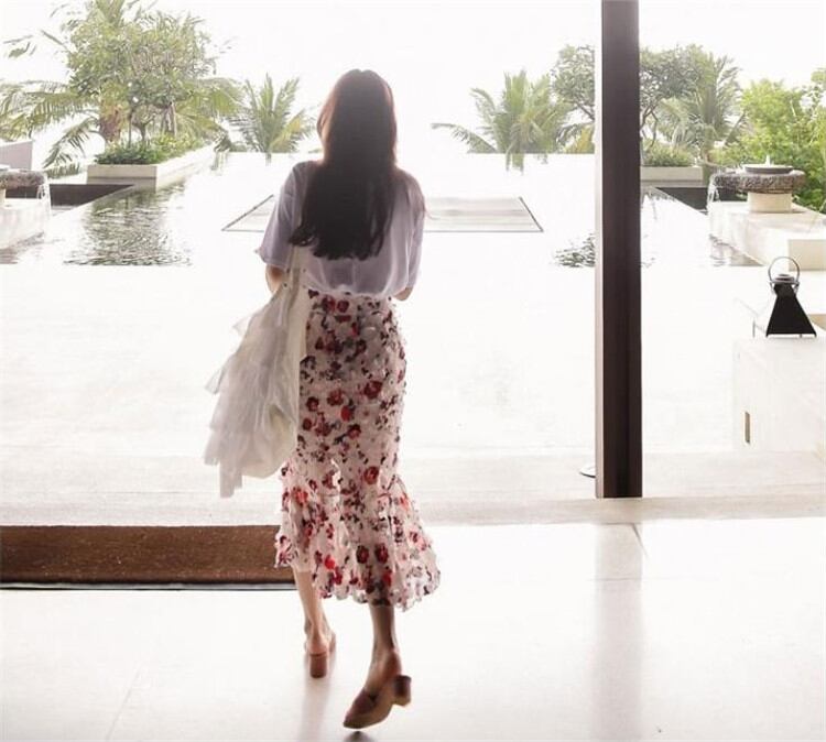 ◎【送料無料】プリント シフォン スカート 中長セクション 花びら 減齢 ハイウエスト フィッシュテールスカート