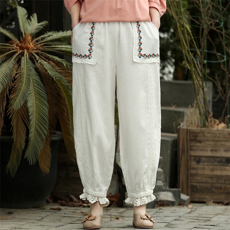 ししゅう シルク sweet系 ピュアカラー テーパードパンツ カジュアルパンツ