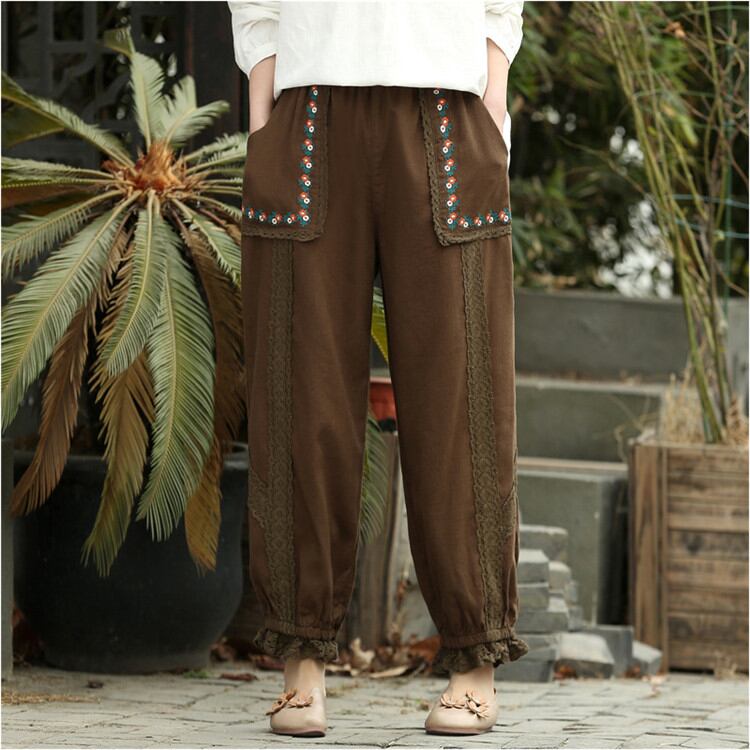 ◎【送料無料】ししゅう シルク sweet系 ピュアカラー テーパードパンツ カジュアルパンツ