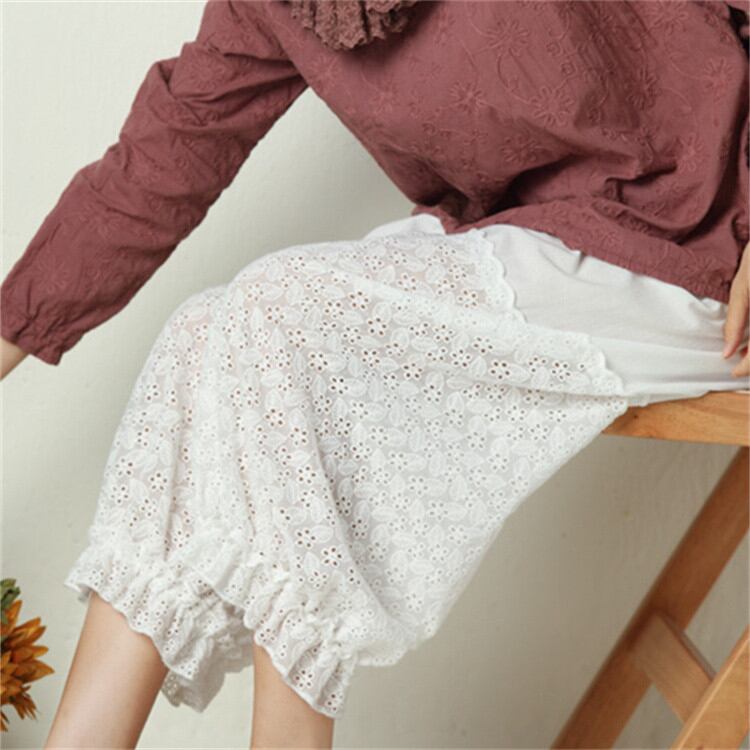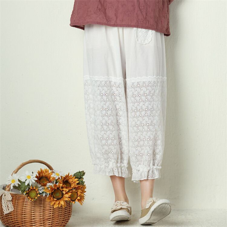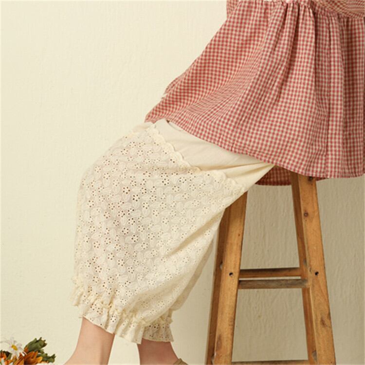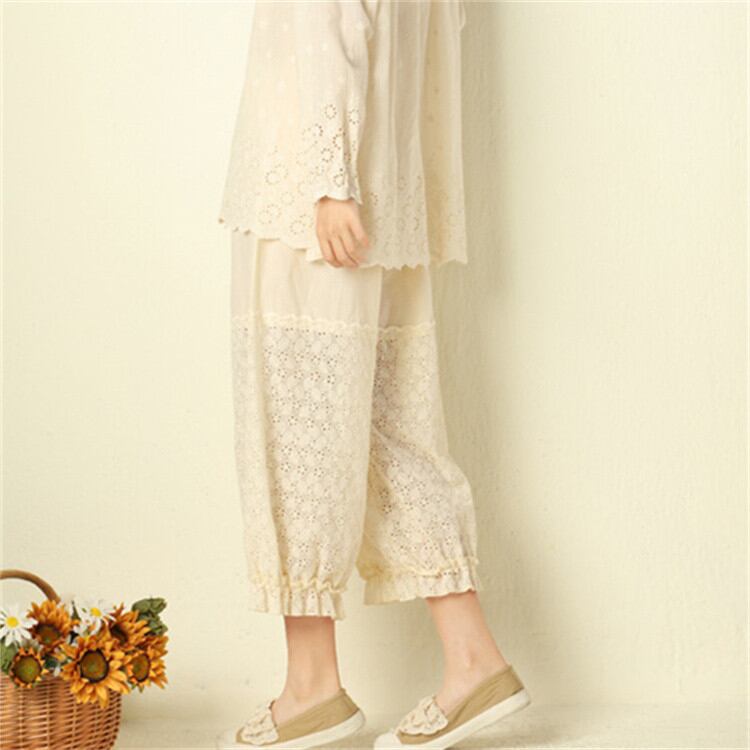 ◎【送料無料】ししゅう 縫付 透かし彫り ロングパンツ sweet系 カジュアルパンツ ゆったりする