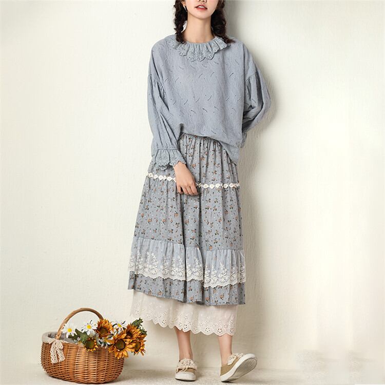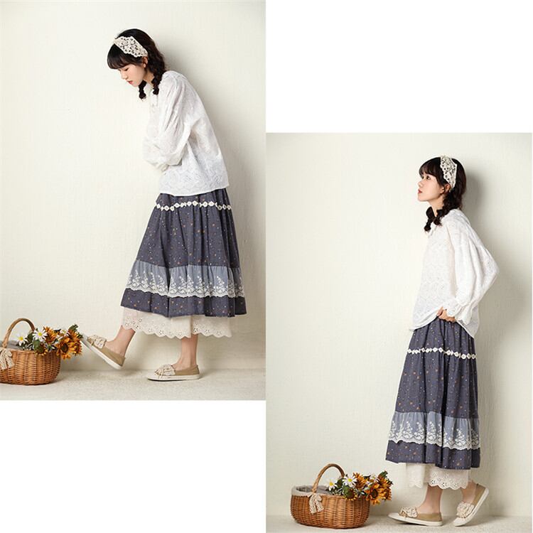 ◎【送料無料】ゆったりする 減齢 レース sweet系 Aライン スカート ダブルレイヤー ロング