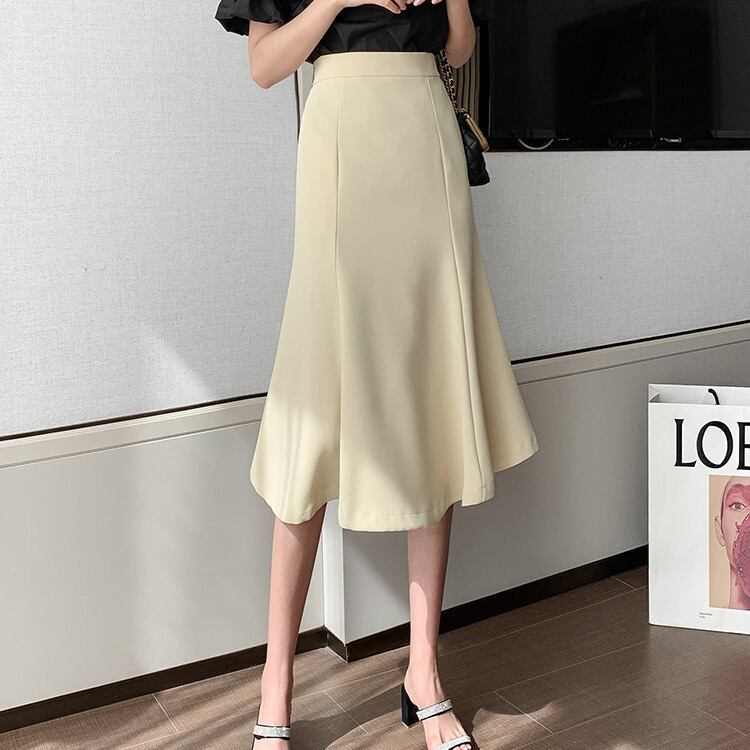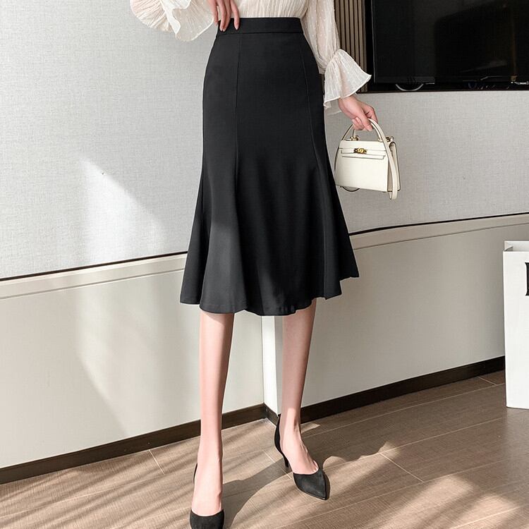 ◎【送料無料】イレギュラー 大きい裾 ハイウエスト 中・長セクション フィッシュテールスカート