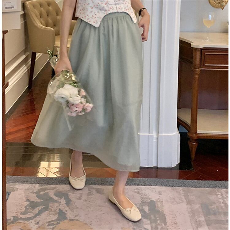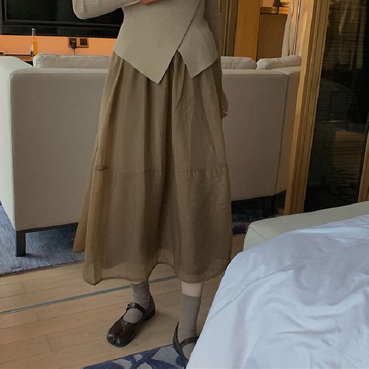 ◎【送料無料】タイトスカート Aライン ハイウエスト 2022年新作 ガーゼスカート 中・長セクション