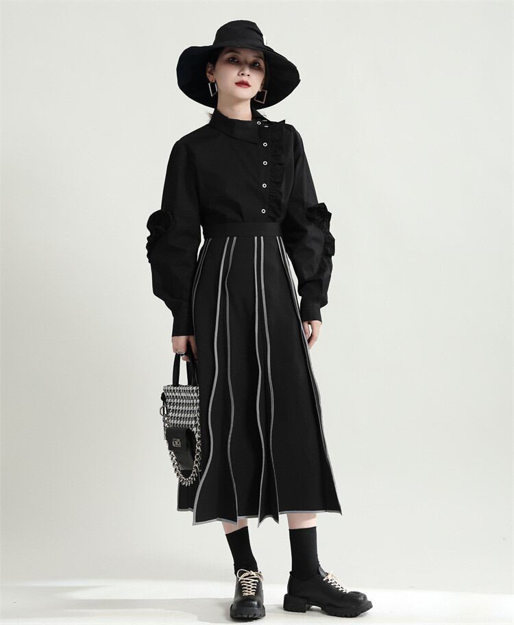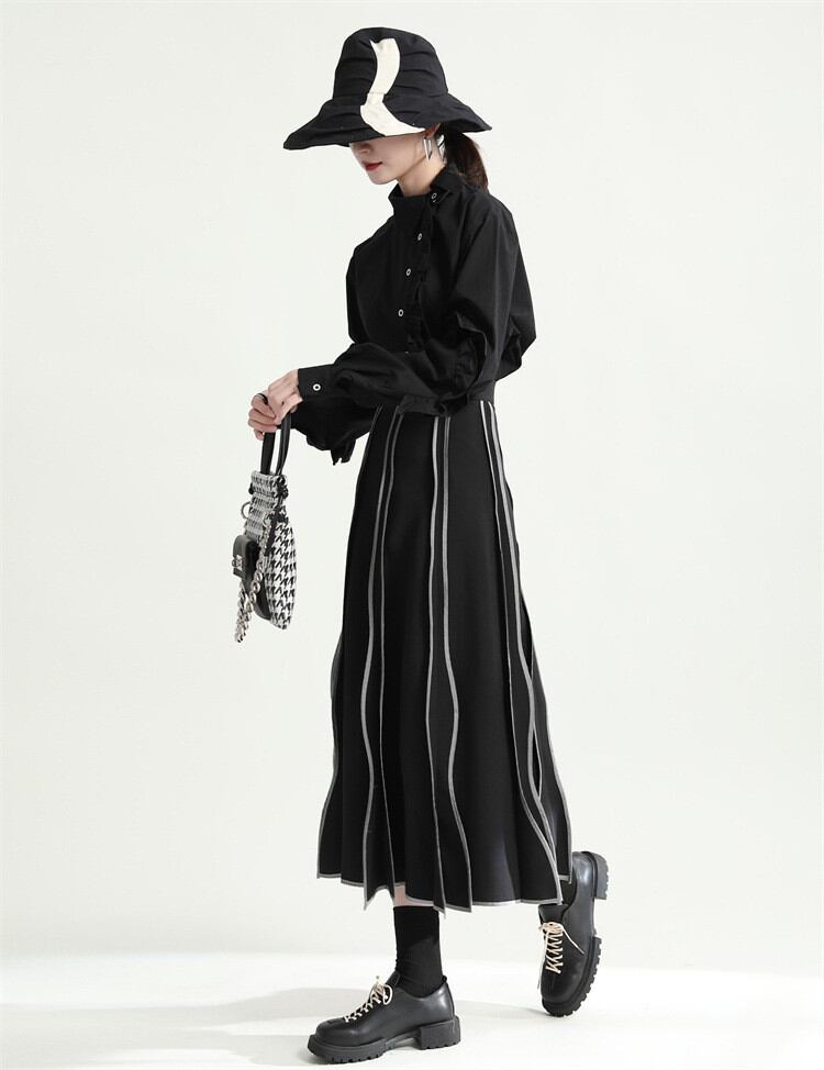 ◎【送料無料】レトロ 簡約 ハイウエスト Aライン イレギュラー ウェーブスカート スカート スリム