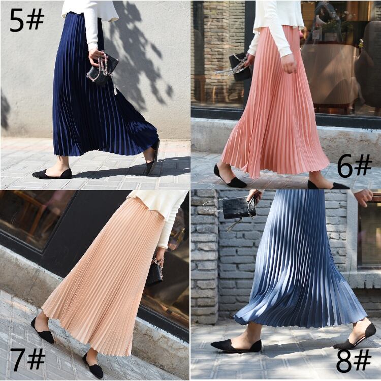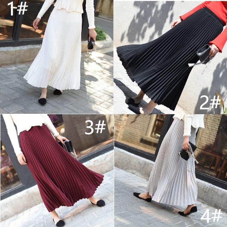 ◎【送料無料】2022春夏新作 シアースカート プリーツスカート マキシ丈スカート ウェストゴム レディース 全18色