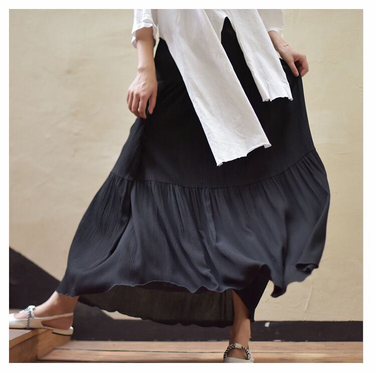 ◎【送料無料】2022春夏新作 シアースカート フレアスカート ロングスカート ウェストゴム レディース マキシ丈