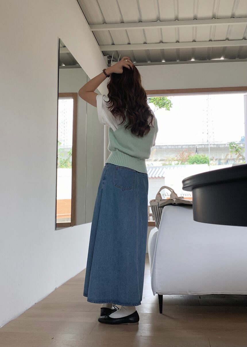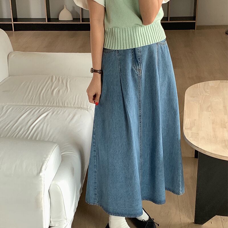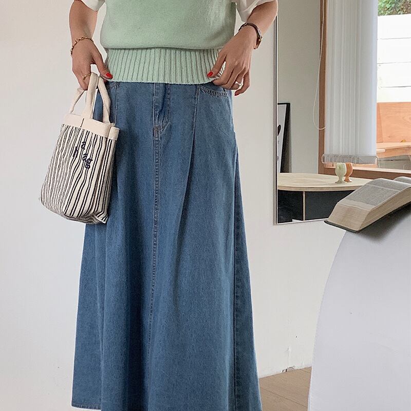◎【送料無料】2022新作 デニム フレアスカート ロングスカート ハイウェスト 体型カバー レディース