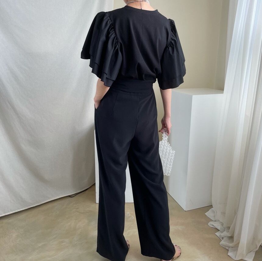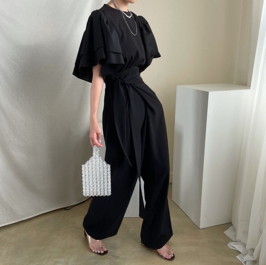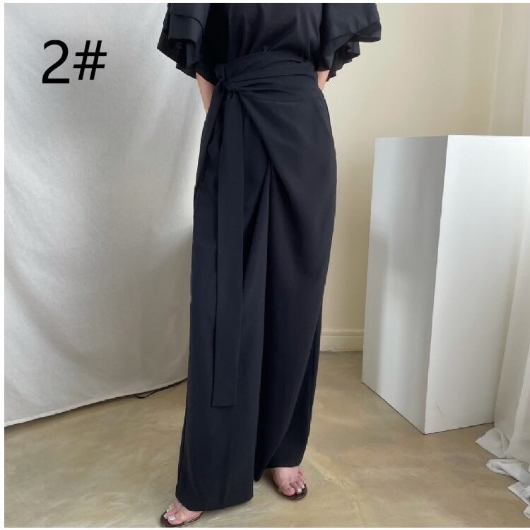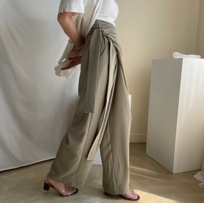 ◎【送料無料】2022春夏新作 ロング丈ズボン ロングパンツ ワイドパンツ ハイウエスト レディース 着痩せ リボン付き