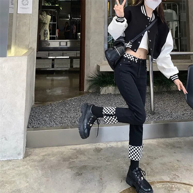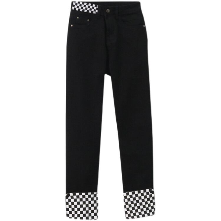 ハイウエスト スリム 八分丈パンツ ストレート ジーンズ 縫付 デザインセンス