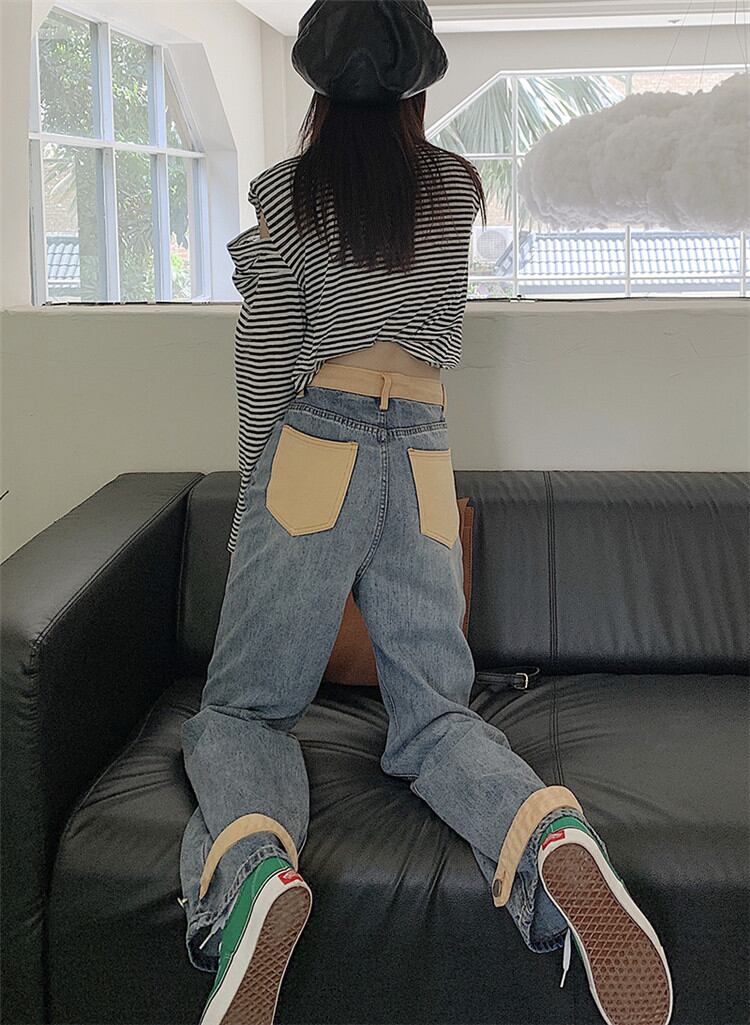 ゆったりする ファッション パンツ 縫付 ジーンズ 個性 デザインセンス レトロ