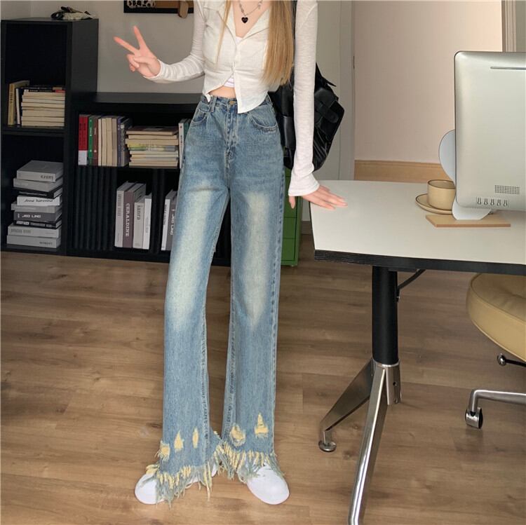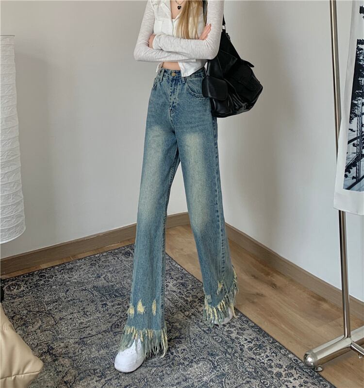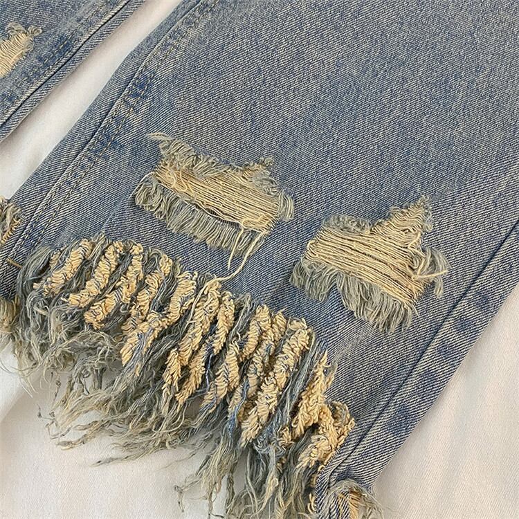 タッセル ワイドパンツ 2022年春の新作 デザインセンス ダメージデニムパンツ