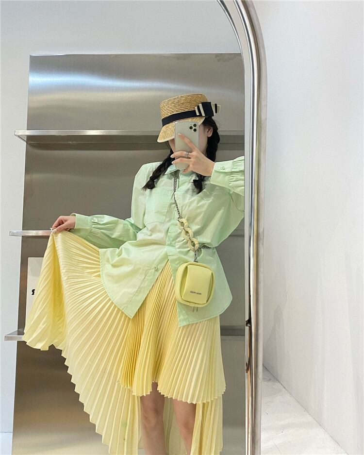 2022年春新作 中・長セクション ハイウエスト プリーツスカート レディース 気質