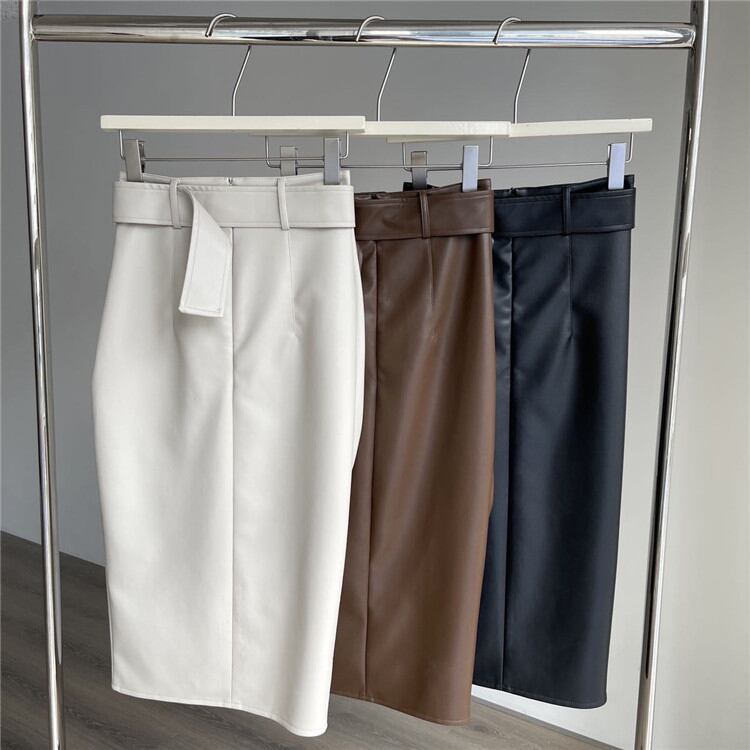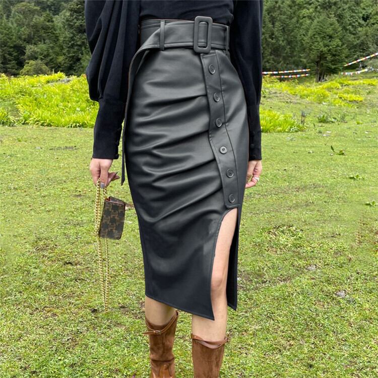 スプリット ハイウエスト スリム タイトスカート レザースカート 2022年春新作 気質