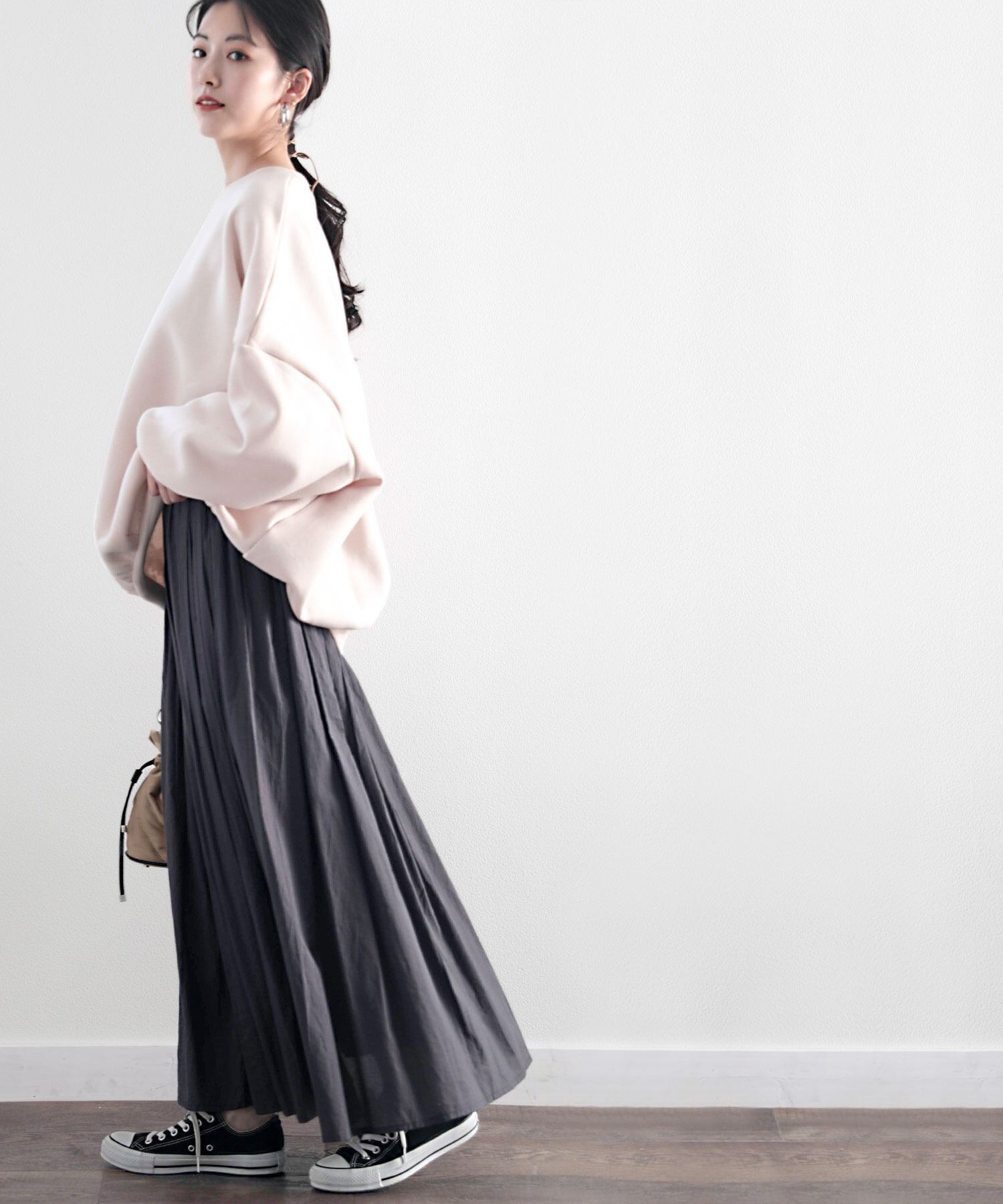 ゆったりとしたデザインのハイウエストスカートが登場しました。肌心地の良い素材がこれからの季節にピッタリで、手放したなくなります。