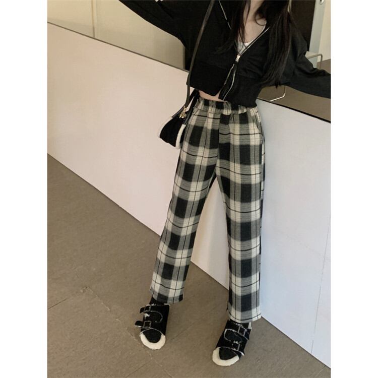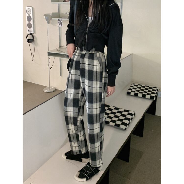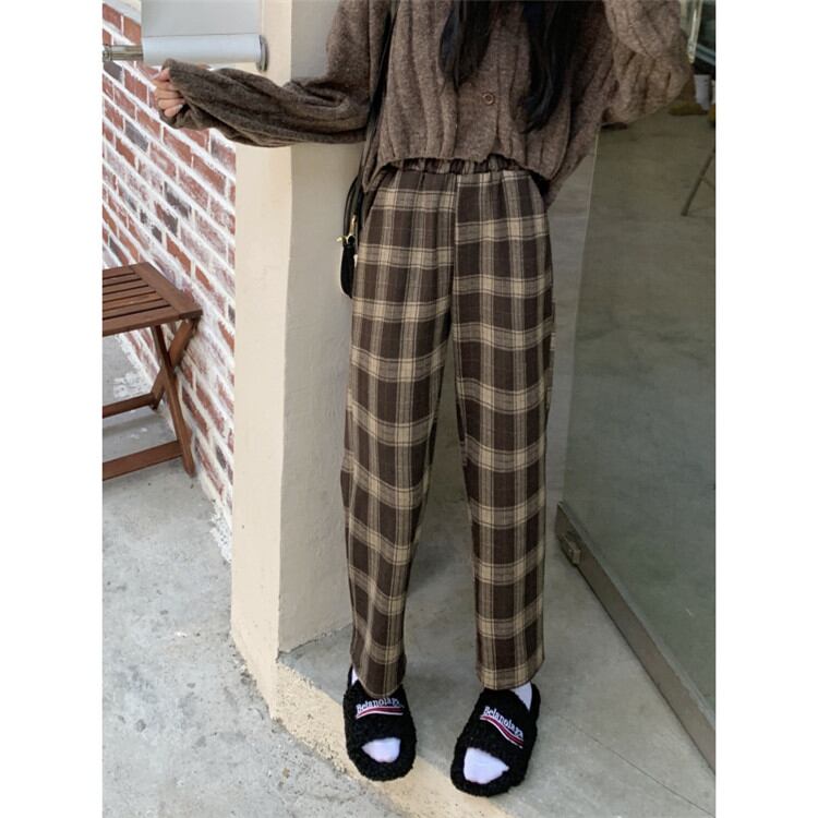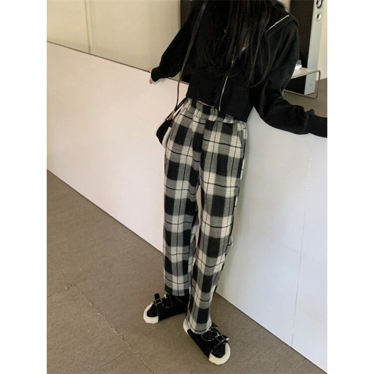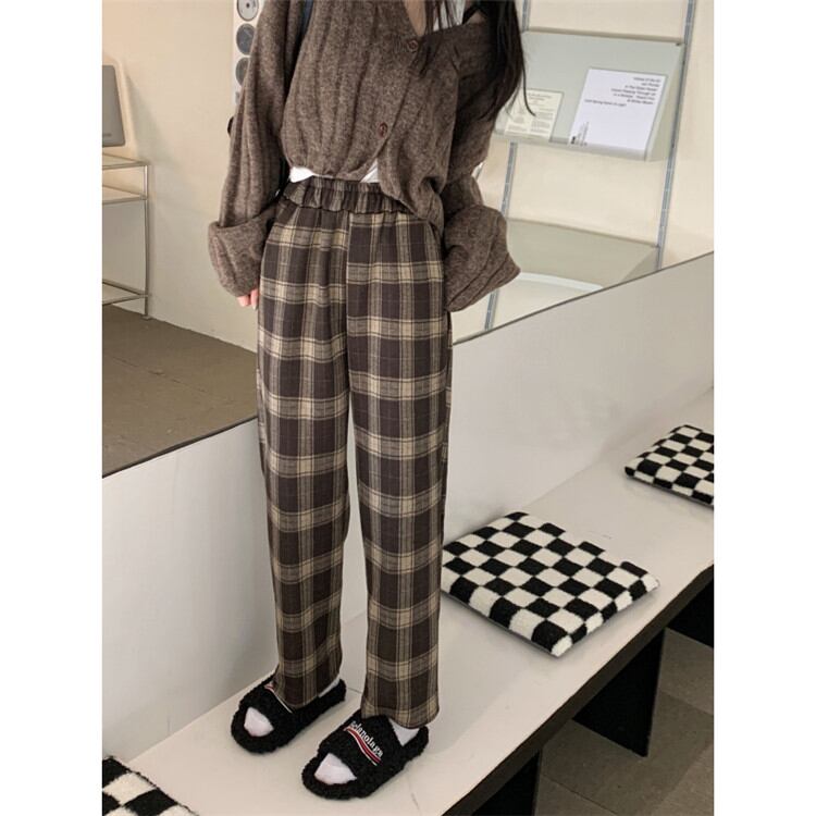 大人気 暖かい 厚手 ワイドパンツ 女性 ロングパンツ カジュアルパンツ チェック柄