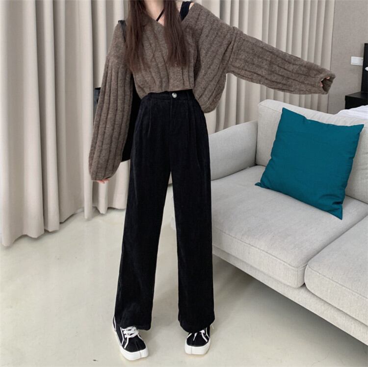 ◎【送料無料】韓国ファッション コーデュロイ レトロ スリム オシャレ カジュアルパンツ 伸縮性のあるウエスト
