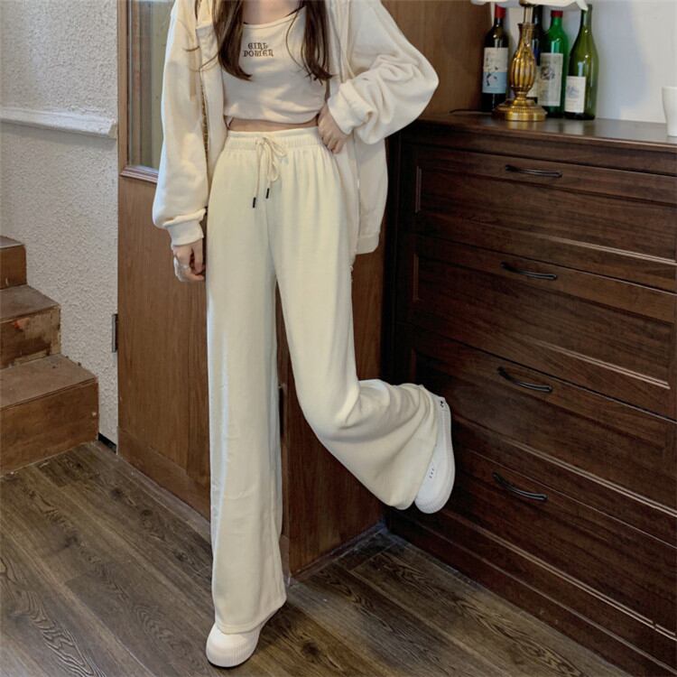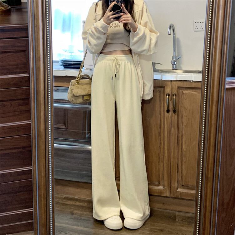 ワイドパンツ 女性 秋 冬 ロングパンツ カジュアルパンツ 伸縮性のあるウエスト ピュアカラー