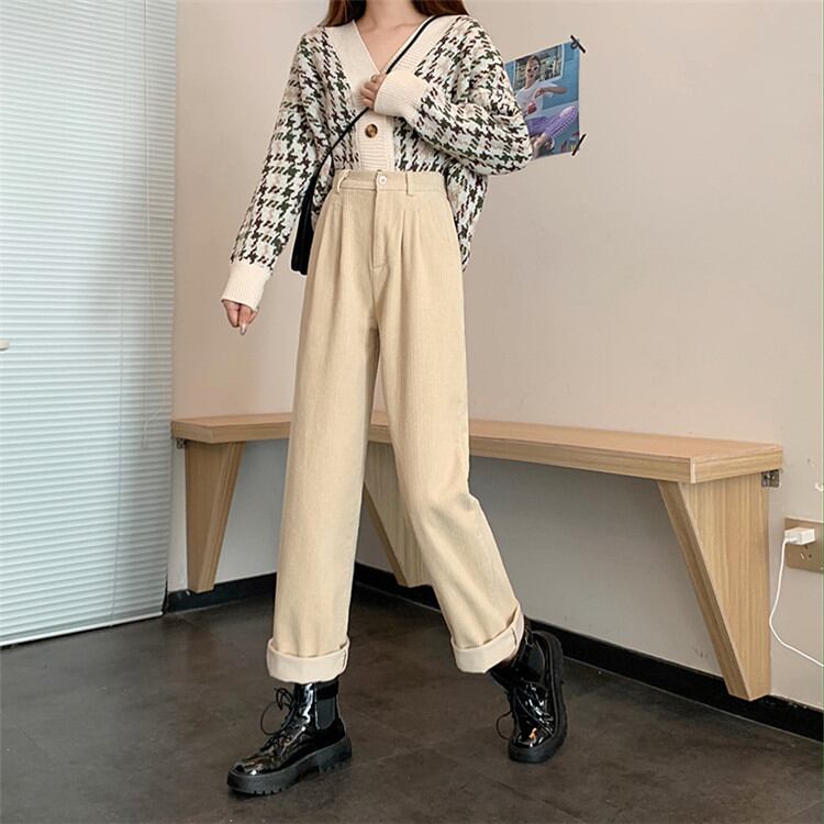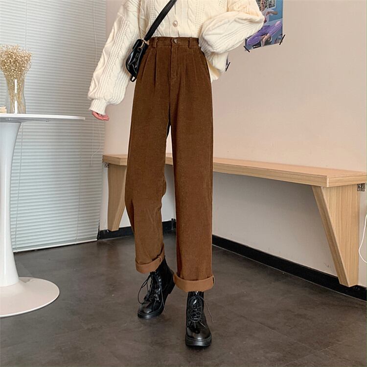 オシャレ カジュアルパンツ ロングパンツ ワイドレッグパンツ コーデュロイ