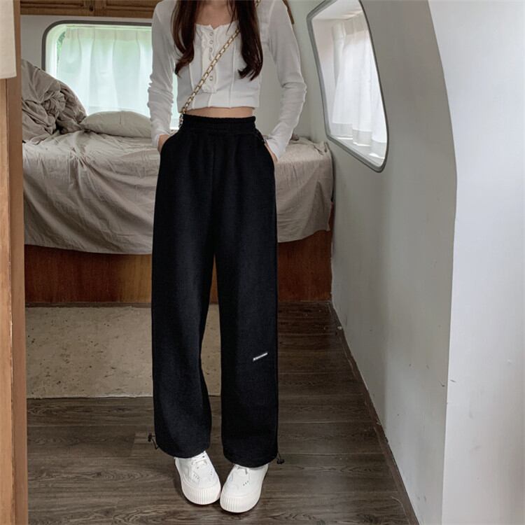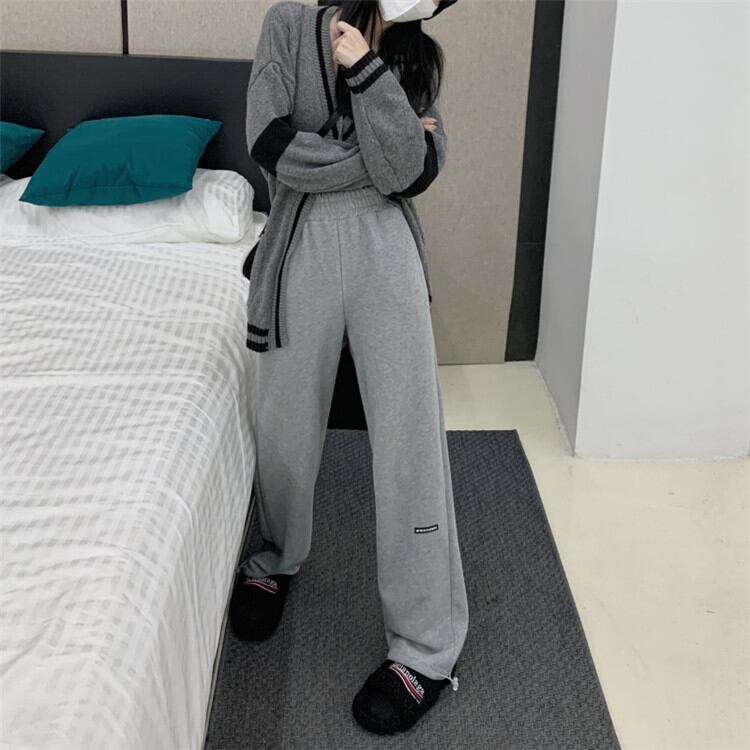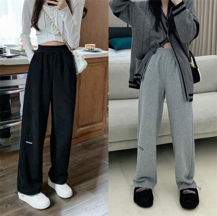 伸縮性のあるウエスト カジュアルパンツ ロングパンツ ワイドレッグパンツ スリム オシャレ