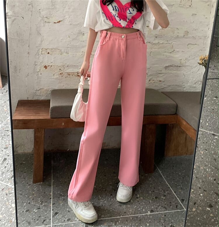 ◎【送料無料】新作 ハイウエスト ワイドパンツ ゆったりする ロングパンツ レディース ジーンズ