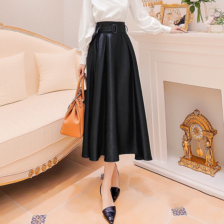 2021年秋冬新作 ハイウエスト レトロ スカート 中・長セクション Aライン