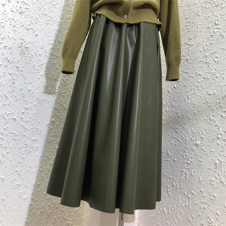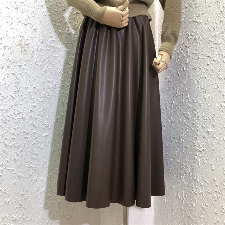 ◎【送料無料】秋冬 スカート Aライン 中・長セクション 大きい裾 レトロ ハイウエスト PUレザー