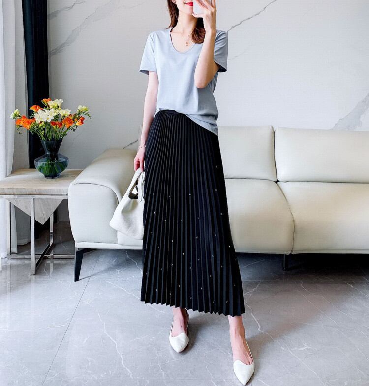 ロングスカート プリーツスカート レディース 大きい裾 中・長セクション スカート
