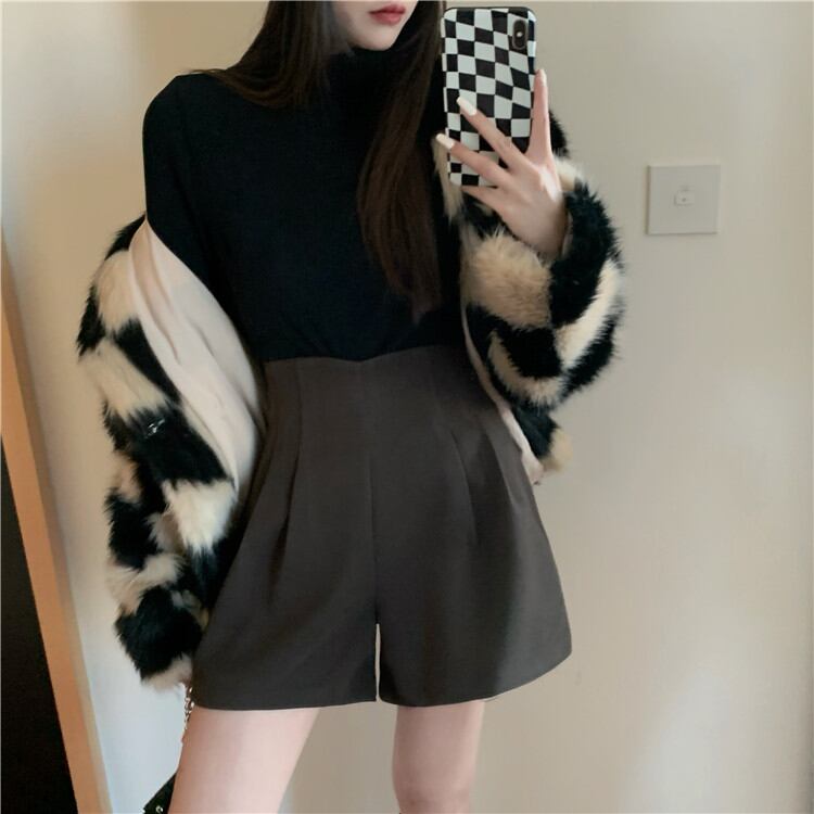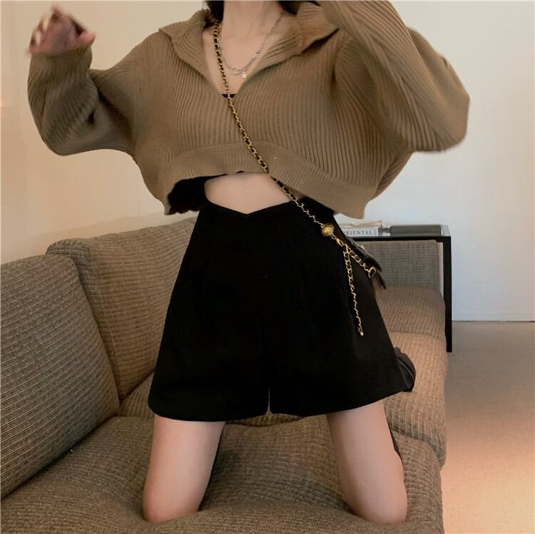 ショートパンツ ハイウエスト ワイドレッグ デザインセンス ピュアカラー