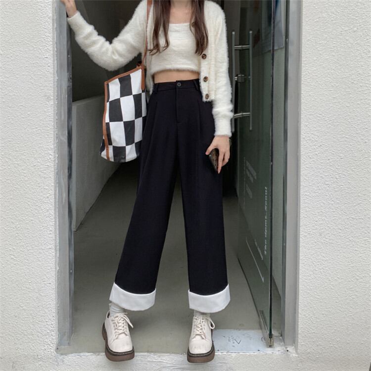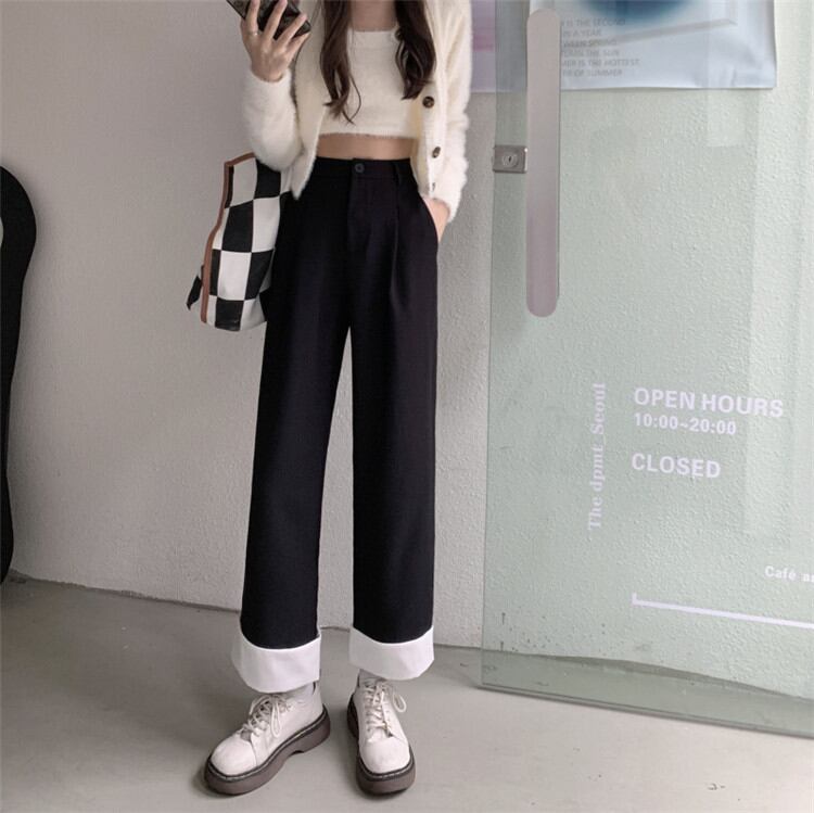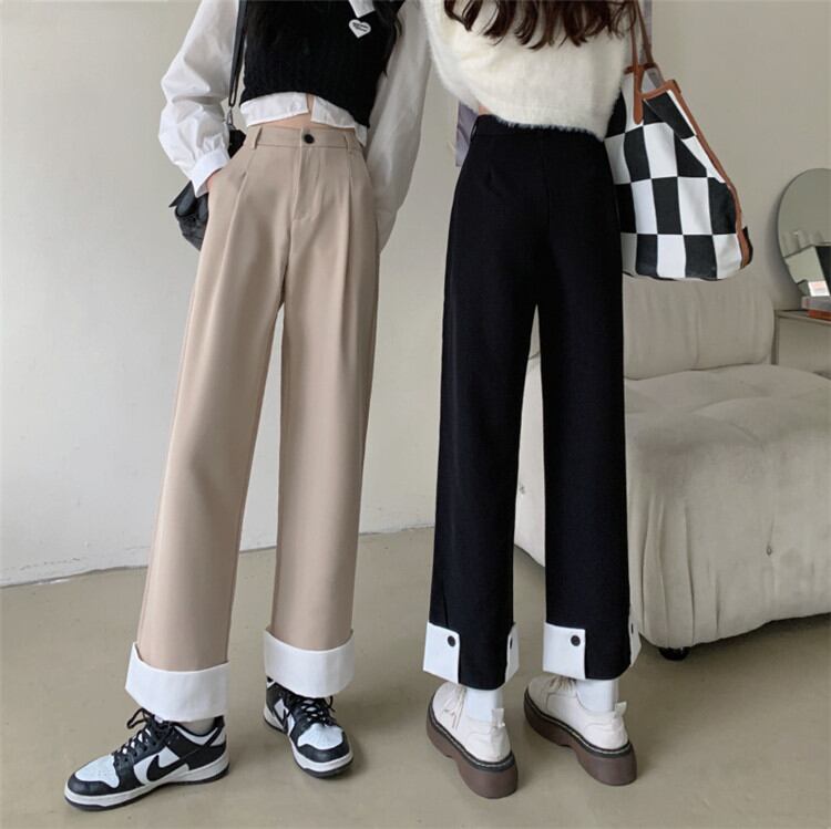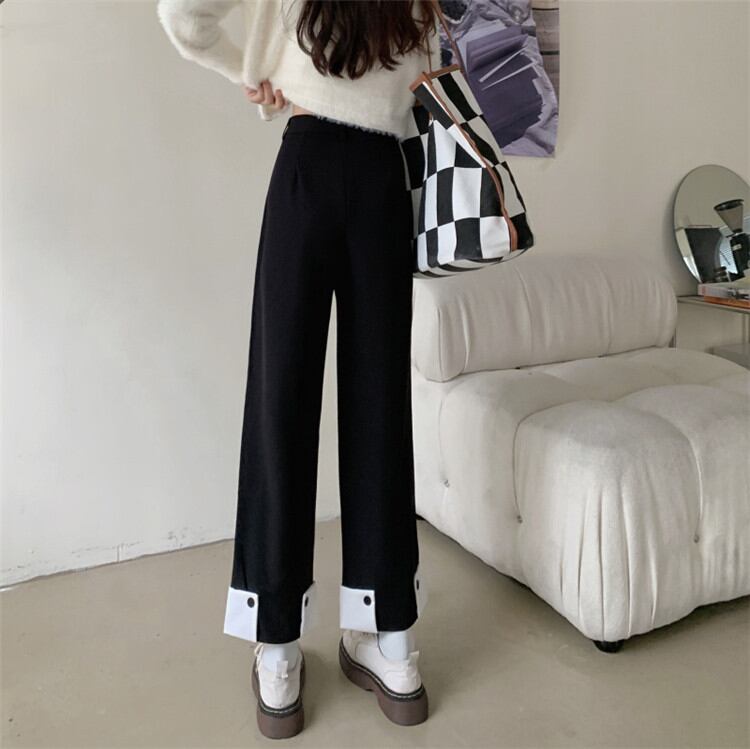 韓国版 秋 新作 気質 ハイウエスト スリム 縫付 スーツパンツ ストレートパンツ