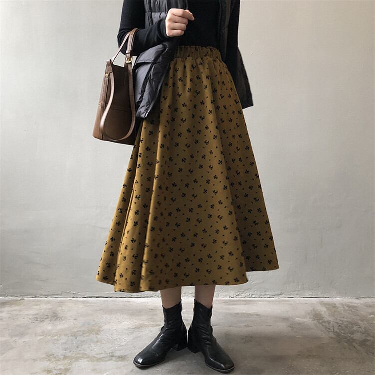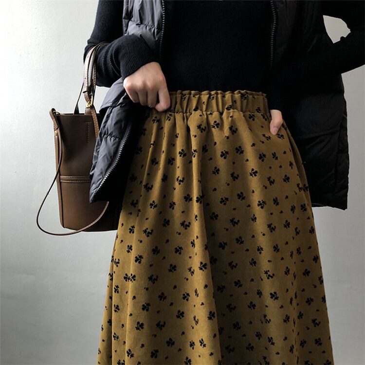 ◎【送料無料】大幅値下 ハイウエスト フローラル スカート レディース 2021冬 ニュースタイル レトロ スカート