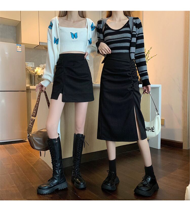 シンプル 気質 ロングスカート ショートスカート 女性 ハイウエスト スリム Aライン エレガント