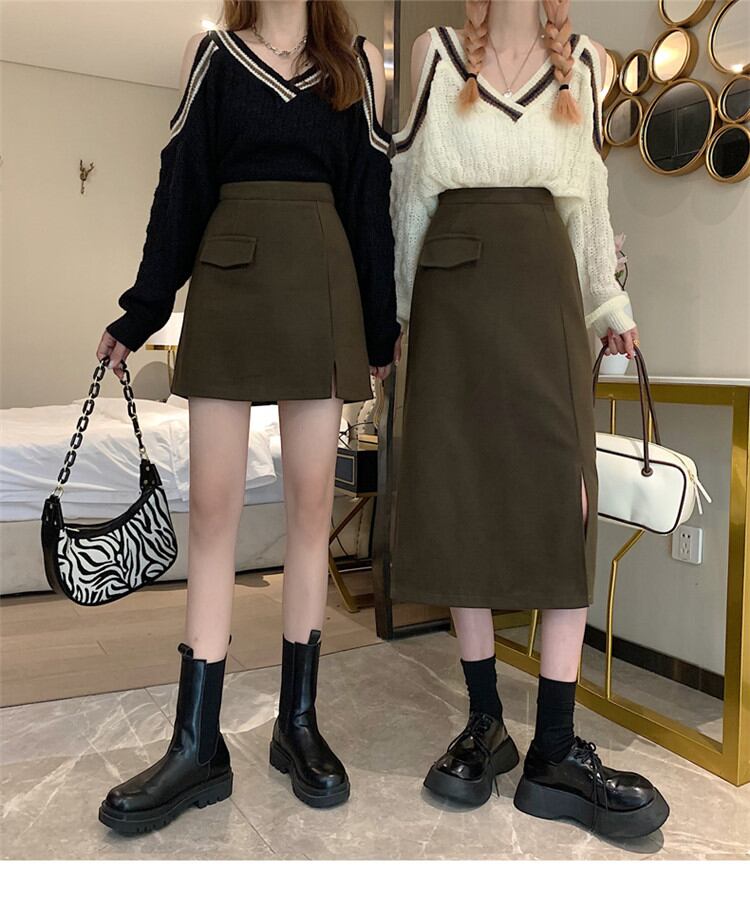 ショートスカート 女性 韓国版 ハイウエスト スリム Aライン タイトスカート シンプル