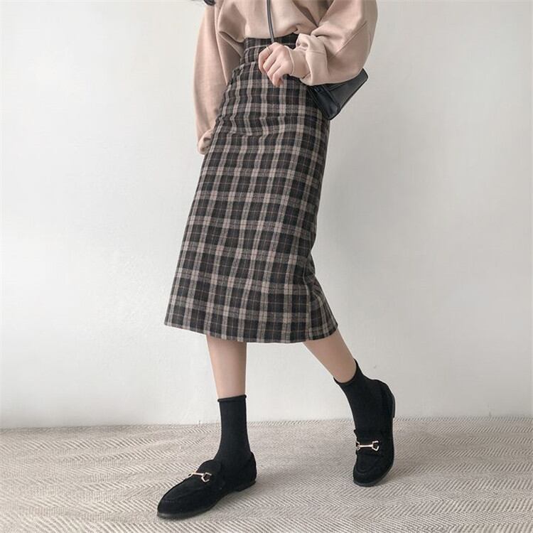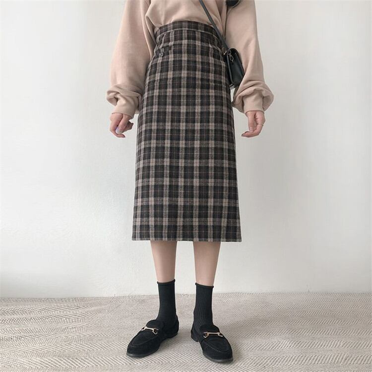 チェック柄 ハイウエスト タイトスカート スカート 中・長セクション 学院風 カジュアル 大人気