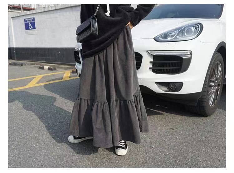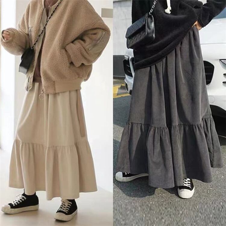 ◎【送料無料】今年売れてます コーデュロイ スカート ロングセクション 秋冬 女性 フリル フィッシュテールスカート