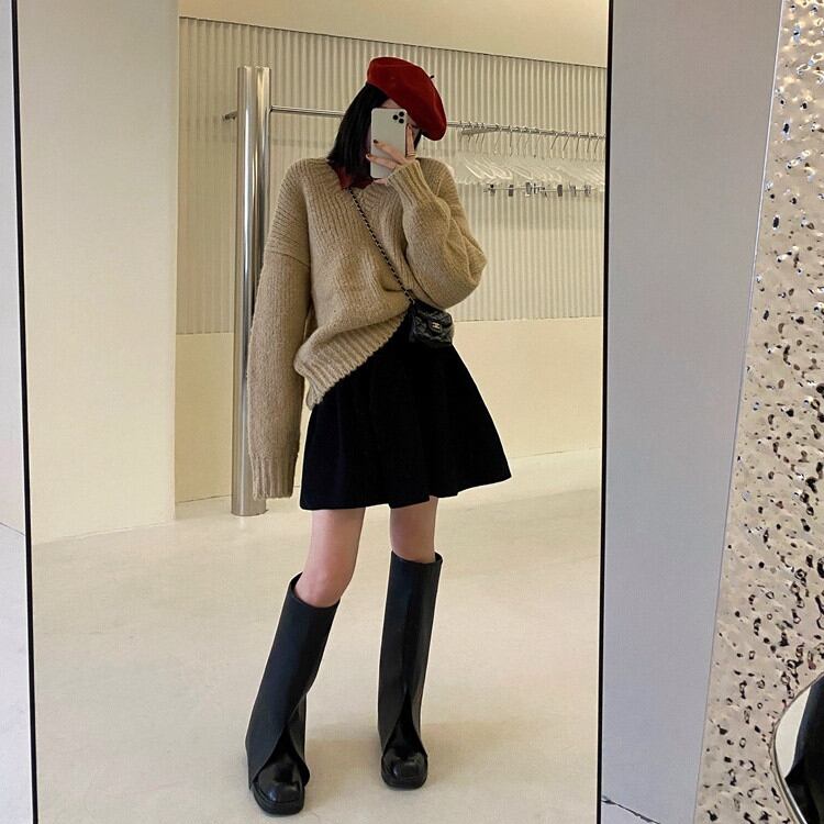 ◎【送料無料】レディース ミニスカート Aライン 学院風 プリーツスカート ハイウエスト ニット