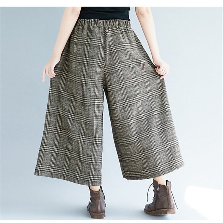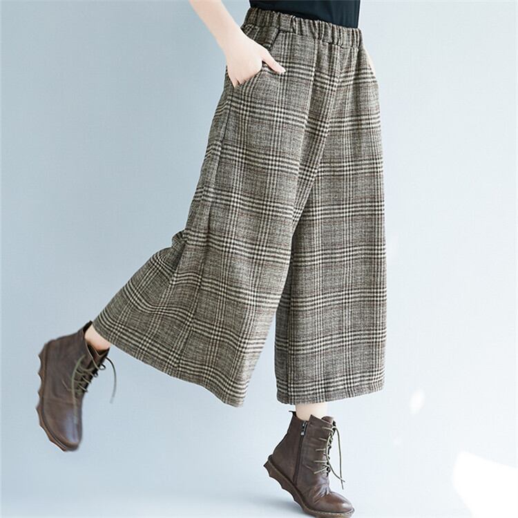 ◎【送料無料】秋冬新作 格子縞 キュロット ゆったりする カジュアル 七分丈パンツ ワイドパンツ
