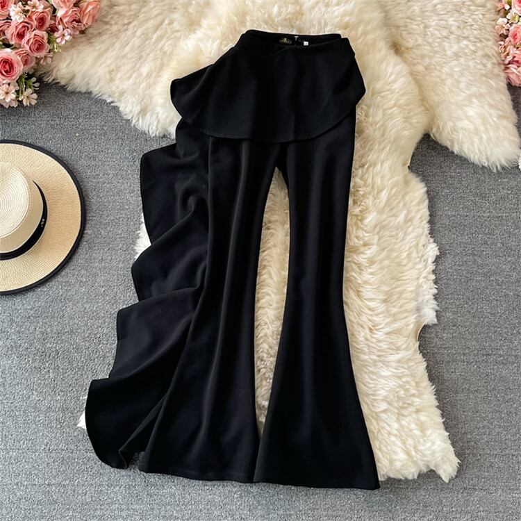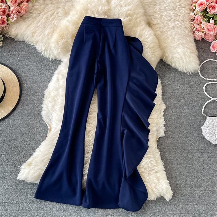 カジュアル OL ハイウエスト スリム フリル 気質 フレアパンツ ワイドパンツ