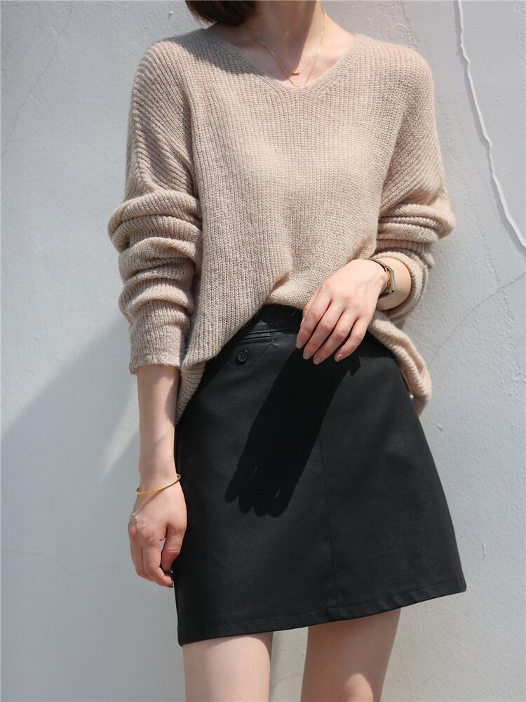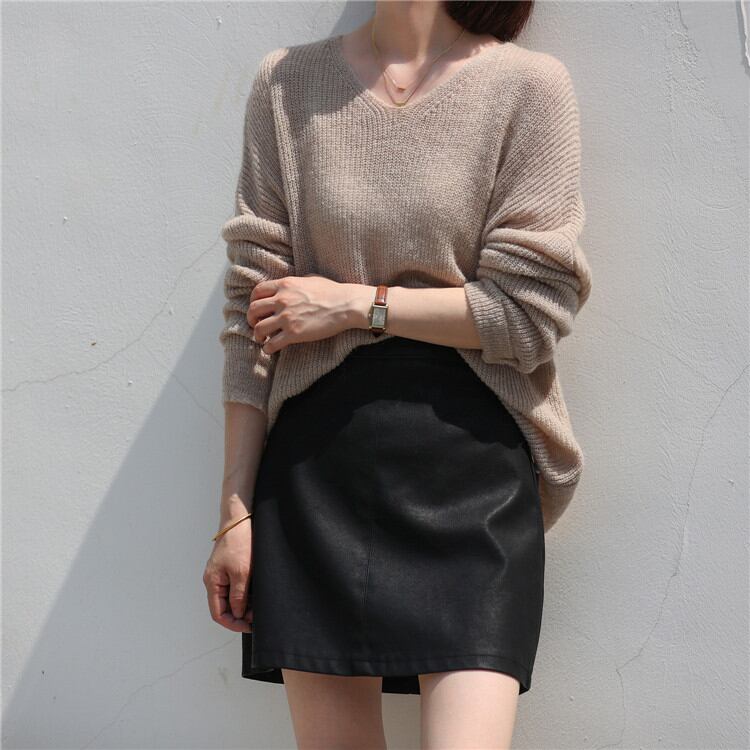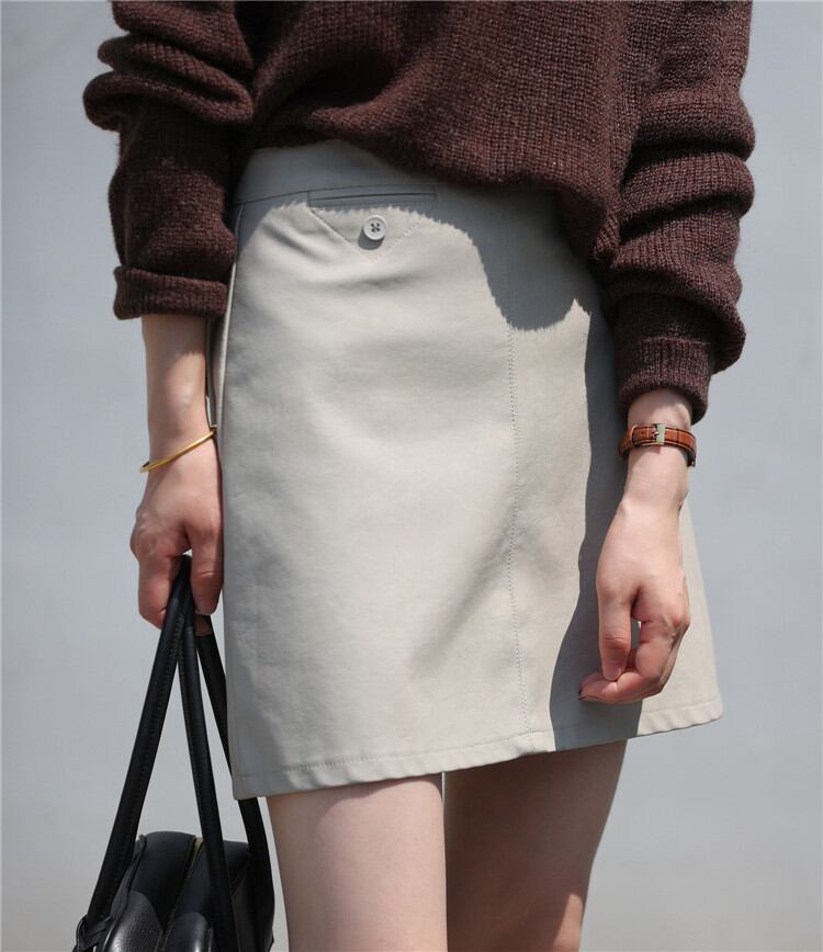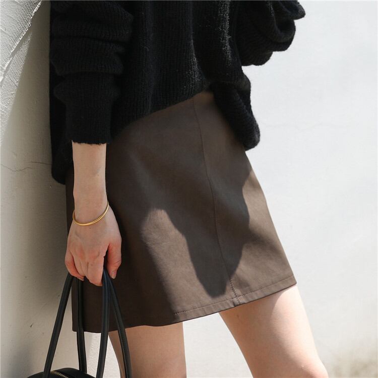 2021年秋新作 ハイウエスト つや消し PUレザー ミニスカート スリム 気質